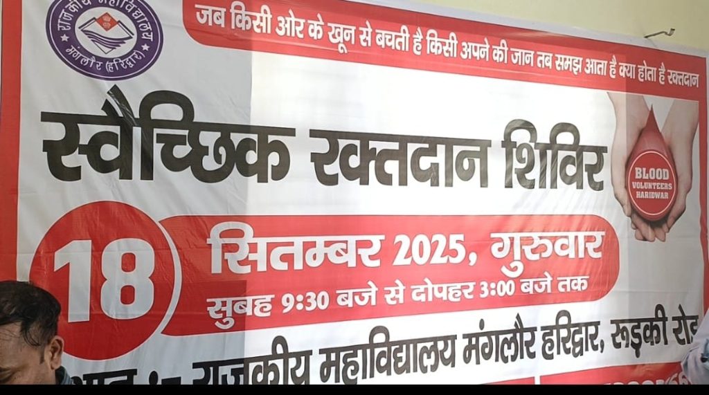 मंगलौर राजकीय महाविद्यालय में डा राम भरोसे व समस्त अध्यापक व अध्यापिकाओं द्वारा एक स्वेच्छिक रक्तदान शिवर का आयोजन किया गया